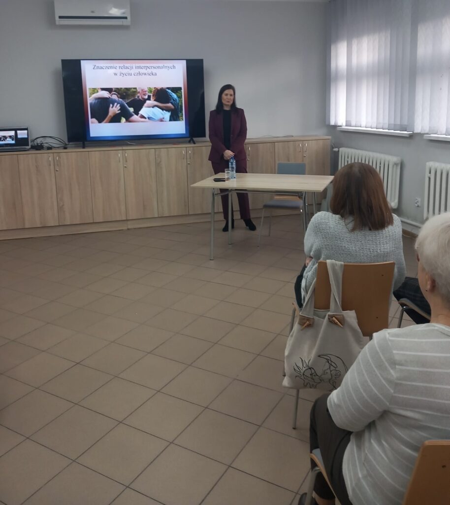 Podczas prelekcji skierowanej do słuchaczy Uniwersytetu Trzeciego Wieku, pani psycholog podkreślała, jak ogromną rolę w życiu osób po 60. roku życia odgrywają relacje z innymi ludźmi. Zdrowy kontakt z drugim człowiekiem, rozmowa, wspólne zainteresowania oraz budowanie więzi opartych na życzliwości i uczciwości – to elementy, które pozytywnie wpływają na samopoczucie, poczucie wartości i jakość życia.