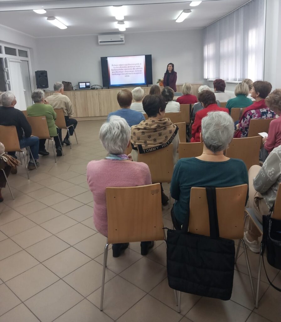 Prowadząca zwróciła uwagę, że dbanie o relacje społeczne może wspierać równowagę emocjonalną, przeciwdziałać samotności oraz poprawiać ogólne funkcjonowanie psychiczne i fizyczne seniorów. Wykład spotkał się z dużym zainteresowaniem i stał się inspiracją do refleksji nad znaczeniem bliskości i wzajemnego wsparcia w codziennym życiu.