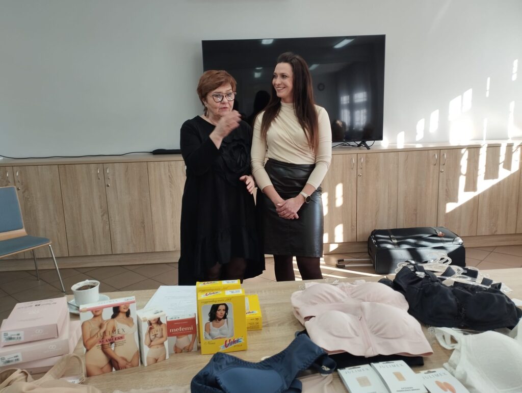 W dniu 04.03 w sali Miejskiej Biblioteki Publicznej, w ramach Święta Kobiet, nasze Panie uczestniczyły w wykładzie instruktażowym, który poprowadziła brafitterka Magda Gurzyńska. Udzieliła ona cennych wskazówek dotyczących prawidłowego doboru biustonosza, a także wyboru bielizny wyszczuplającej.