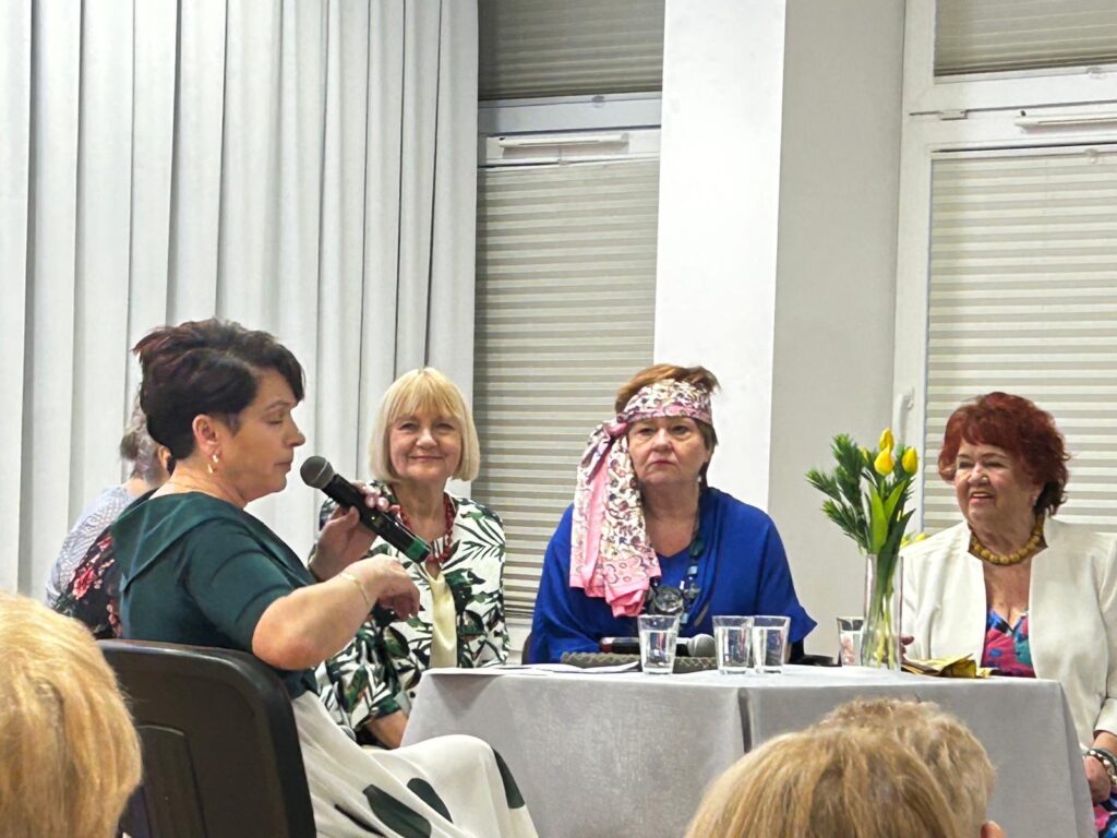 Zachwycił i wzruszył nas występ, który na nasze powitanie przygotowały dwie licealistki – wiersz Norwida „Modlitwa” i utwór Czesława Niemena „Dziwny jest ten świat”. Jednak największe poruszenie i najsilniejsze emocje wzbudził w nas PRL-owski salonik. Cóż, PRL to nasze dzieciństwo i młodość, a ”Hity PRL-u” wywołały nostalgiczne wspomnienia, którym dałyśmy wyraz przy stole zastawionym dla nas tak, jakby czas się zatrzymał…To było wzruszające, przemiłe spotkanie, za które dziękujemy pani dyrektor Zespołu Szkół im. C. K. Norwida Barbarze Przeradzkiej-Martko, paniom Joannie Główczewskiej i Annie Żuralskiej oraz wszystkim uczestniczkom. Cieszymy się, że nasza współpraca z Zespołem Szkół im. C. K. Norwida tak się rozwija.