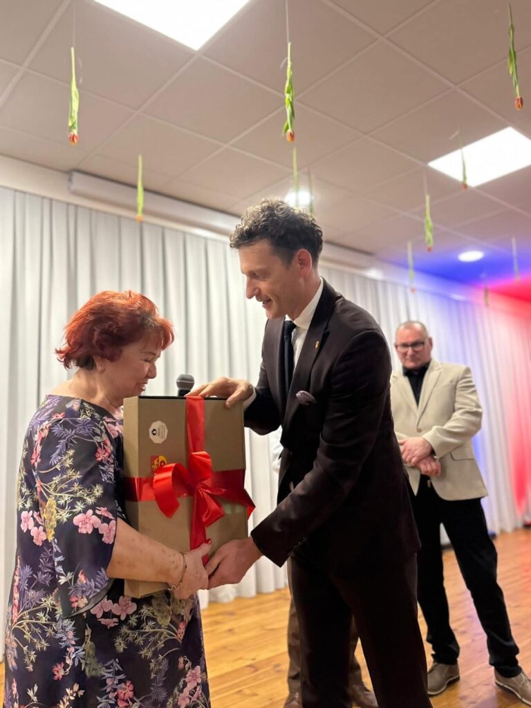Burmistrz wraz z Radnymi Nowego Miasta Lubawskiego wręczyli 🌺 kwiaty wszystkim Paniom obecnym na sali.